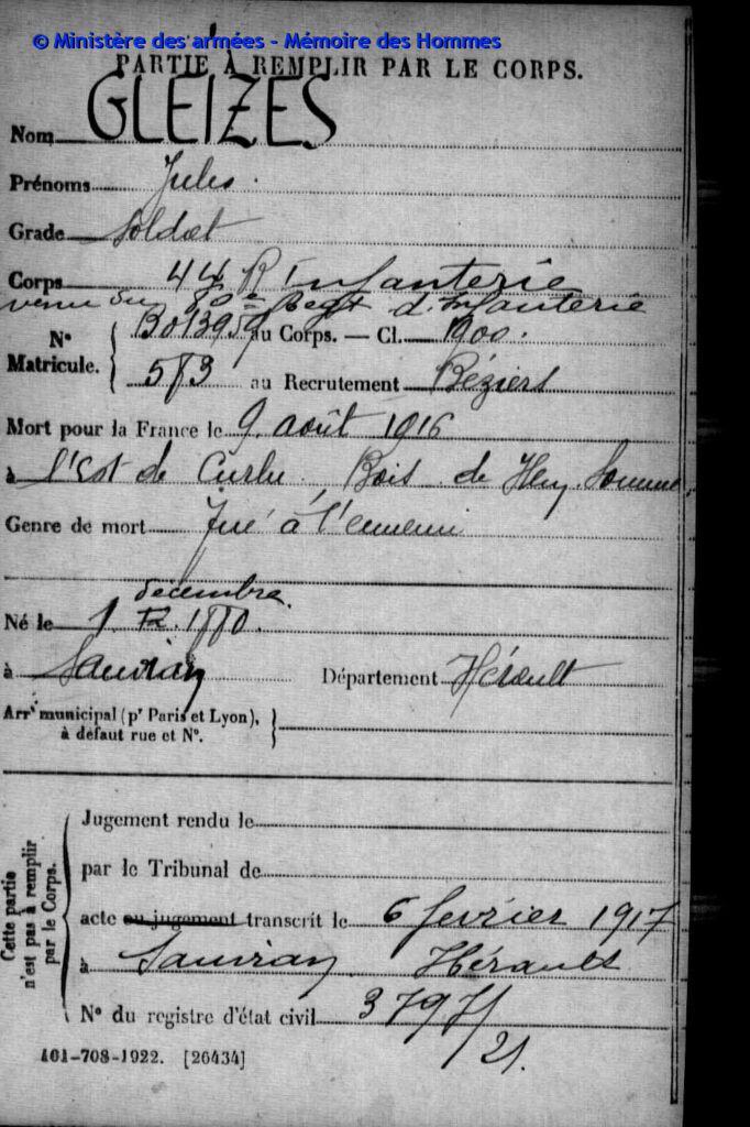 Réformé en 1901. Reconnu apte par le conseil de révision de l’Hérault le 10 décembre 1914.