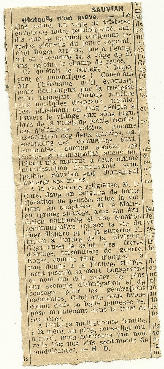 Né le 16 octobre 1920 à SAUVIAN.