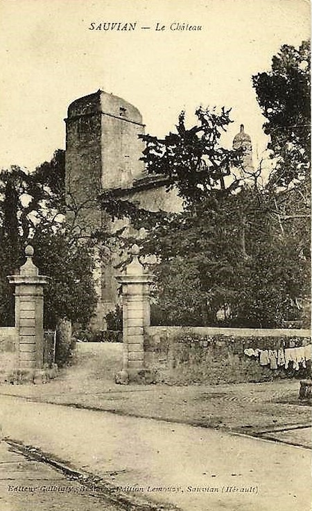 Avant l’an 1000, le château appartenait à Xabouris, d’origine wisigothe, puis à son fils Raymond Marfred à partir de 1097. Les enfants de ce dernier, Richilde et Agnès de Sauvian, en devinrent propriétaires en 1120 et on trouve trace de leur famille jusqu’à la croisade des Albigeois. Puis, en 1158, Guillaume Arnaud devint le seigneur de Sauvian. Durant plus de deux siècles, le château fut la propriété de la famille de Gept qui en partageait la co-seigneurie avec la famille Lautrec, marquis de Villeneuve. Le château devint ensuite la propriété d’Antoine de Manse, puis du marquis de Bausset. Au décès de celui-ci, il fut acquis par le comte d’Astanières qui demanda à l’architecte biterrois Geniès de dresser l’état des lieux des terres et des bâtiments, ce qu’il fit sous la forme d’un atlas (voir photos). Il passa ensuite dans la famille de Chauliac qui s’en sépara en 2018.