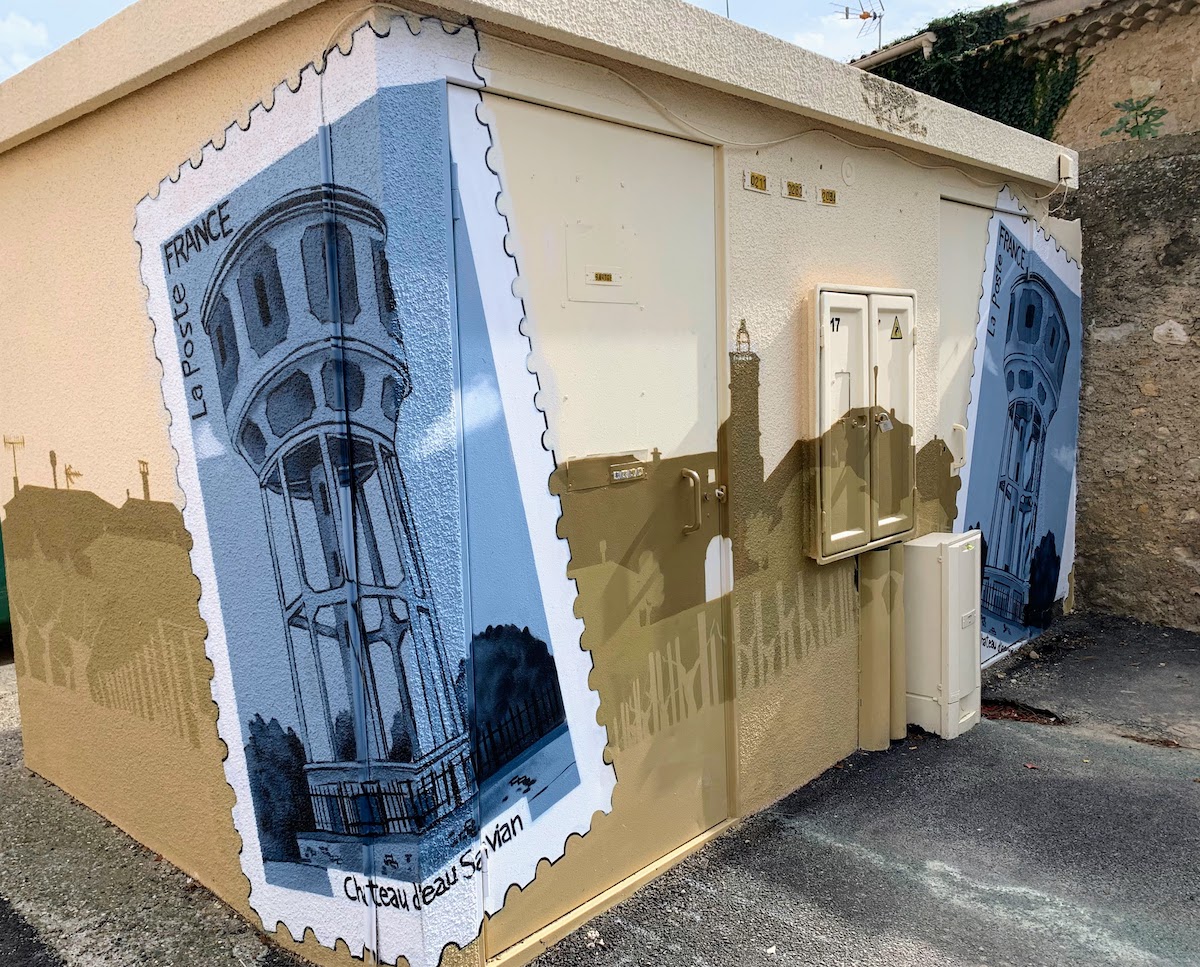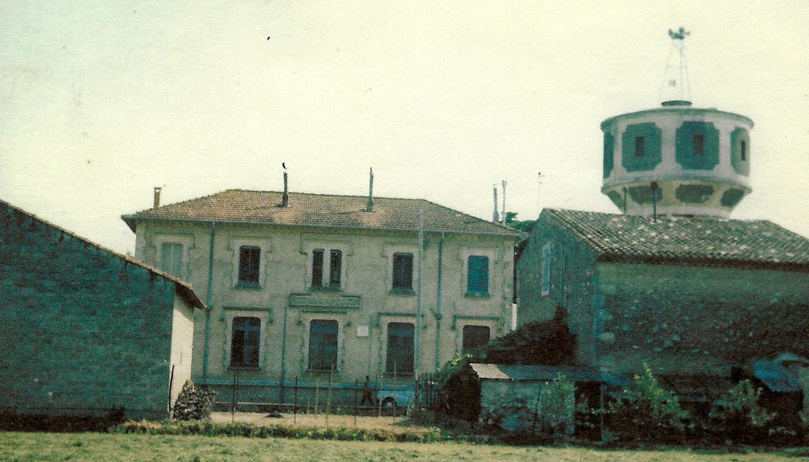 Le château d’eau alimenta la commune en eau pendant plus de 50 ans. On avait placé tout en haut les hauts-parleurs qui servaient à annoncer la présence des chalands sur la place, mais aussi à diffuser les annonces communales (voir la photo ci-dessous). Toutefois, au fil du temps et de la croissance du village, ce réservoir finit par s’avérer trop petit et fut détruit en 1986. La municipalité avait acheté une remise, juste à côté, qu’elle rénova et loua à La Poste (bâtiment actuel). La surface dégagée par la destruction du château d’eau fut transformée en place, baptisée place Émile Barthe2.